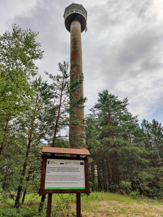 PGL LP Nadleśnictwo Koniecpol w ramach projektu "Kompleksowy projekt adaptacji lasów i leśnictwa do zmian klimatu – zapobieganie, przeciwdziałanie oraz ograniczanie skutków zagrożeń związanych z pożarami lasów" wykonało w roku 2021-2022 modernizacje dwóch dostrzegalni przeciwpożarowych w leśnictwie Kuczków i Perzyny.